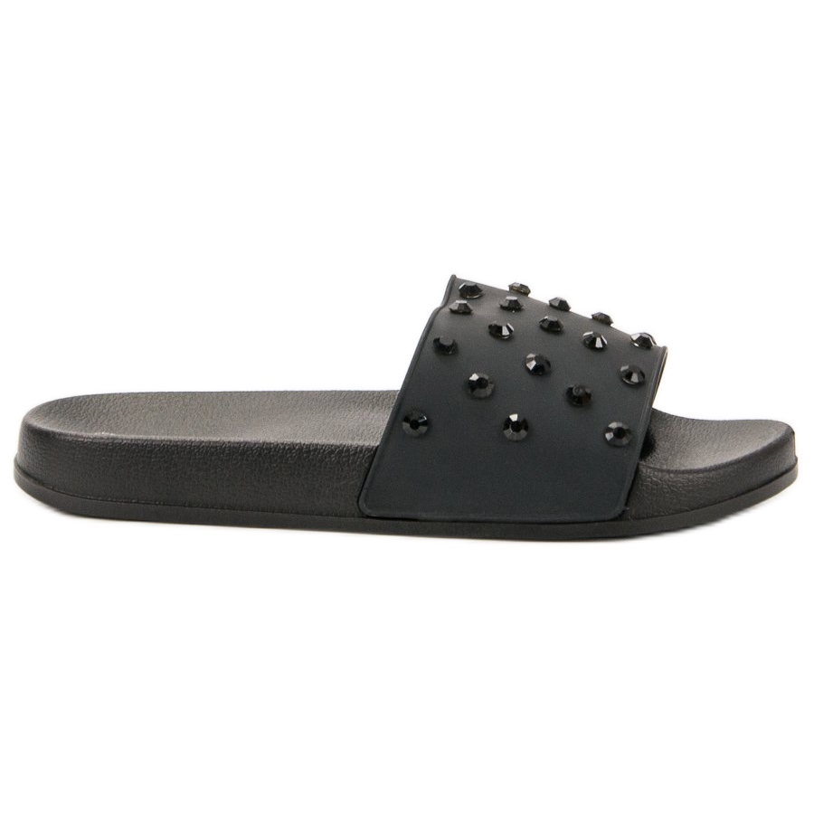 Černé žabky jsou obohaceny o elegantní krystaly, díky kterým jsou šik a poutavé. Jejich minimalistický design, bez dalších vzorů, umožňuje jejich snadné sladění s různými styly – jak ležérními, tak sportovními. Skvěle se budou hodit v kombinaci s letními šaty, kraťasy nebo tepláky.