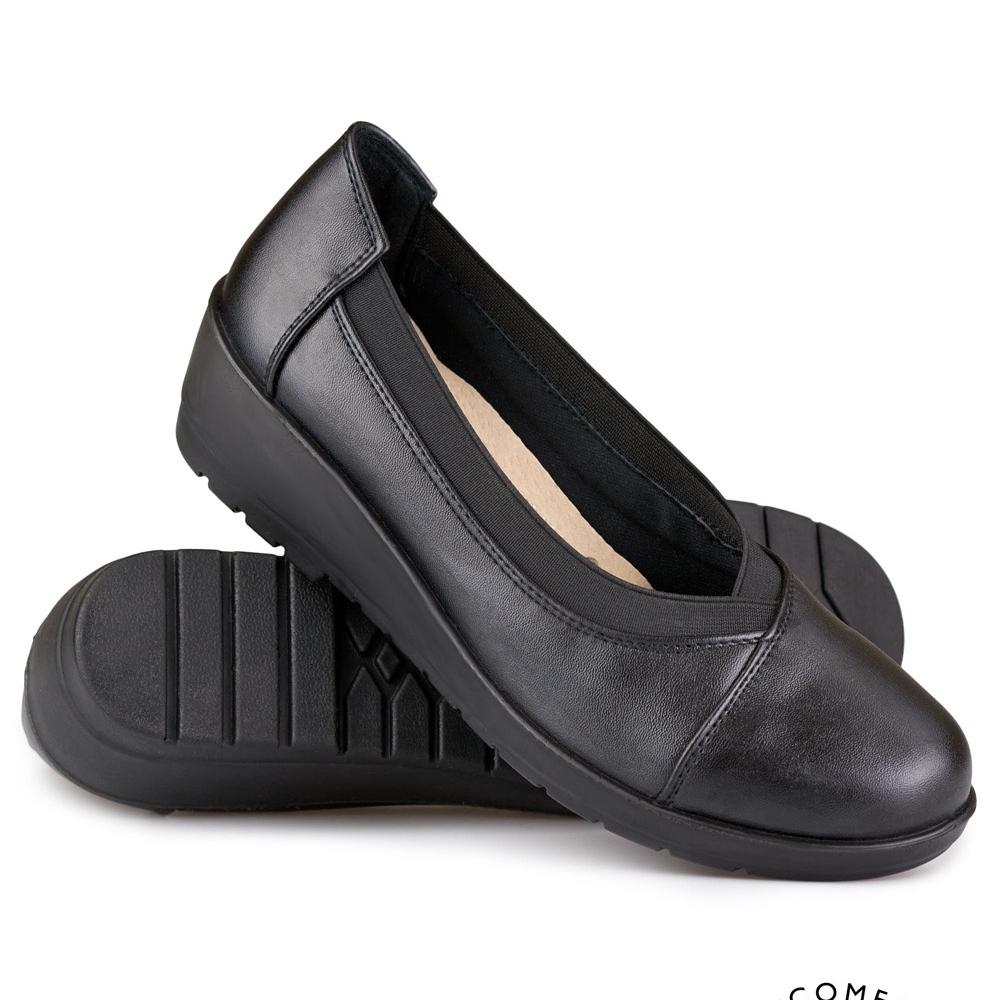 Pohodlné elastické dámské boty vyrobené z ekokůže černý