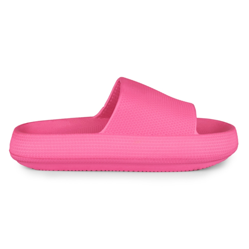 Žabky mají módní růžovou barvu, která dodá barvu každému outfitu. Díky otevřené špičce a navlékací sponě se snadno nazouvají a svlékají, díky čemuž jsou praktické a pohodlné. Výška plošiny 3,5 cm znamená, že si můžete vychutnat jemný zdvih bez ztráty stability.
