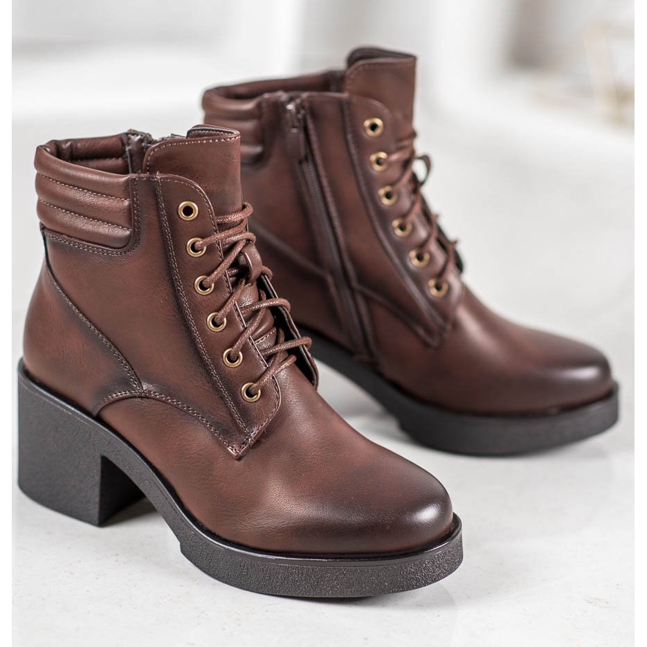 **Pohodlné kotníkové boty Super Mode vyrobené z ekologické kůže v hnědé barvě**