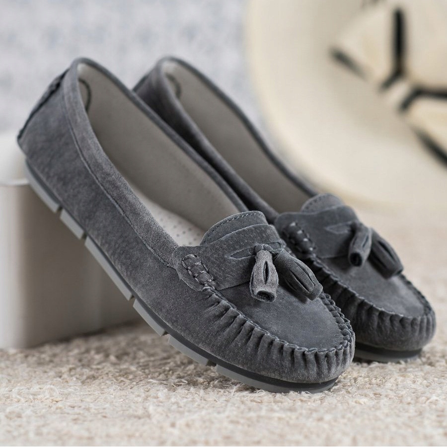 Kožené mokasíny VINCEZA v šedé barvě jsou perfektní volbou pro ženy, které oceňují pohodlí a klasický styl. Tyto jedinečné boty vyrobené z vysoce kvalitní přírodní kůže se vyznačují smyslem pro detail, který se promítá do jejich odolnosti a elegance.