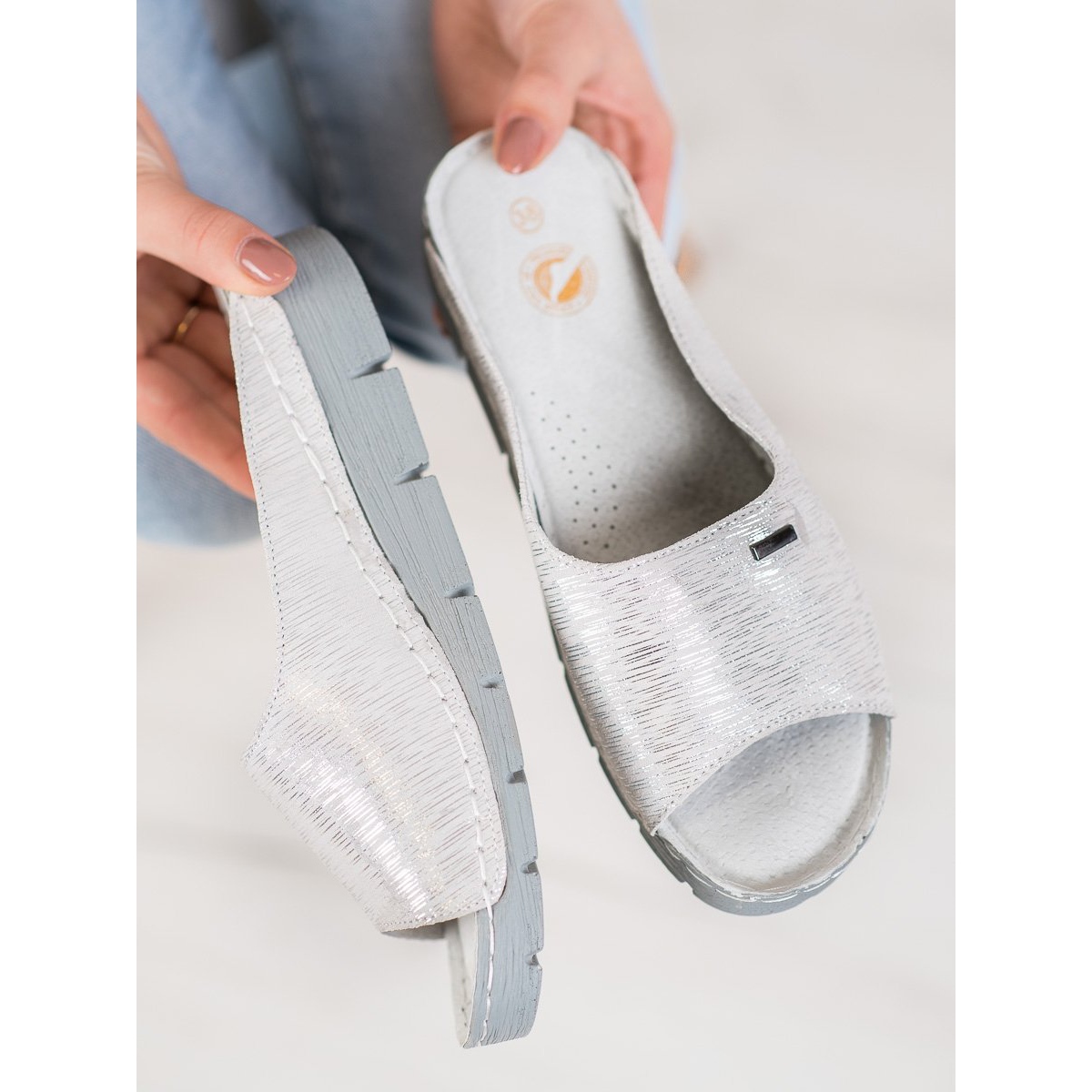 Podrobnosti: Goodin Pohodlné kožené přezůvky šedá
