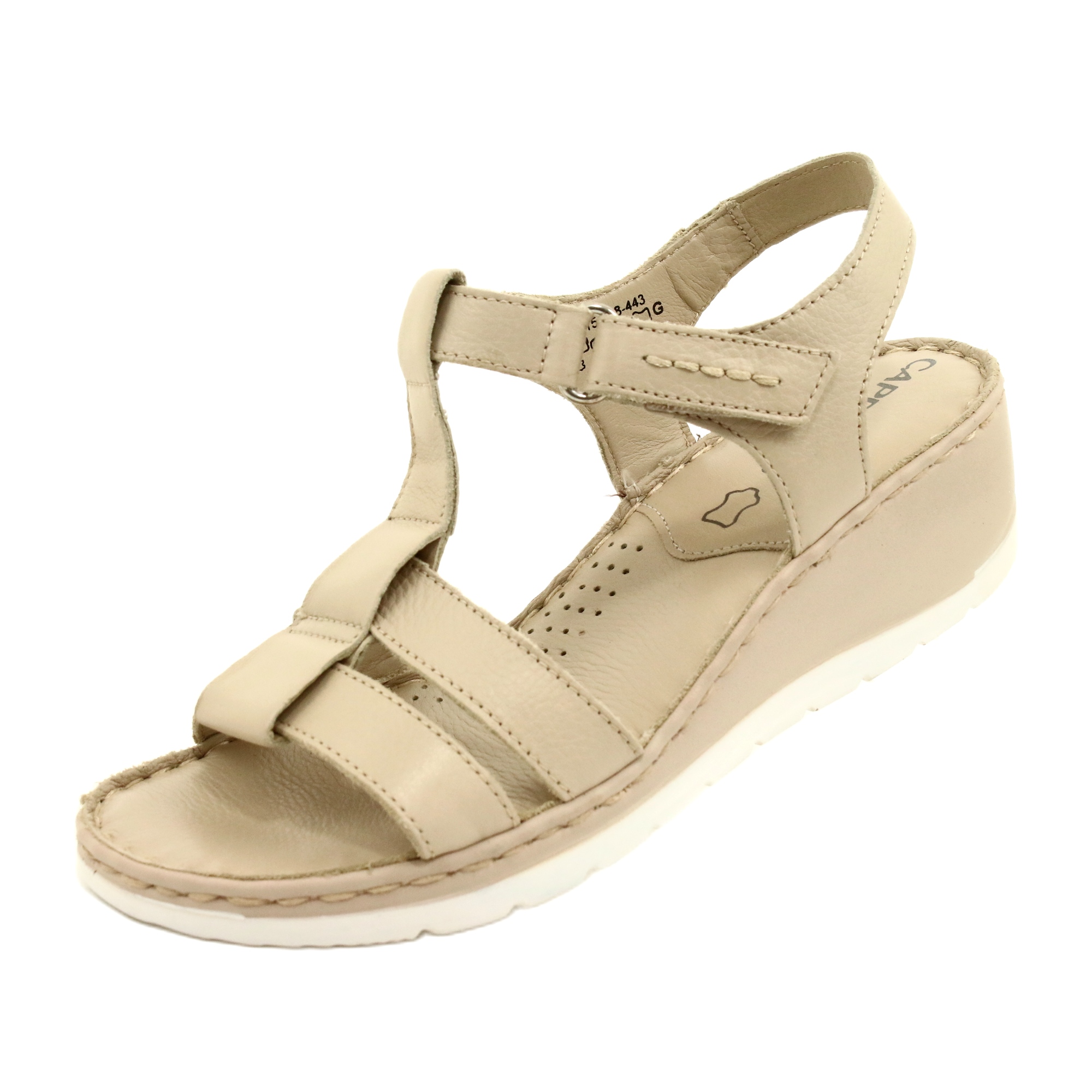 Elegantní a extrémně pohodlné dámské sandály Caprice, vyrobené z měkké, přírodní kůže v klasickém odstínu béžové (béžové). Ideální pro ženy, které si každý den oceňují pohodlí-měkká kožená vložka se přizpůsobuje noze a lehké, flexibilní plošiny (4,5 cm vysoké) zajišťuje stabilitu a jemné zvyšování siluety. Upevnění na suchý zip zaručuje rychlé a pohodlné nasazení a perfektní fit.