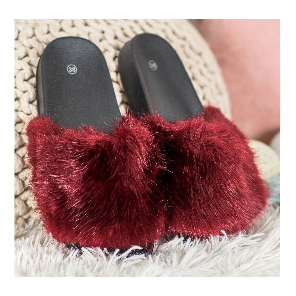 SHELOVET SHELOVET Pohodlné kožešinové pantofle červené