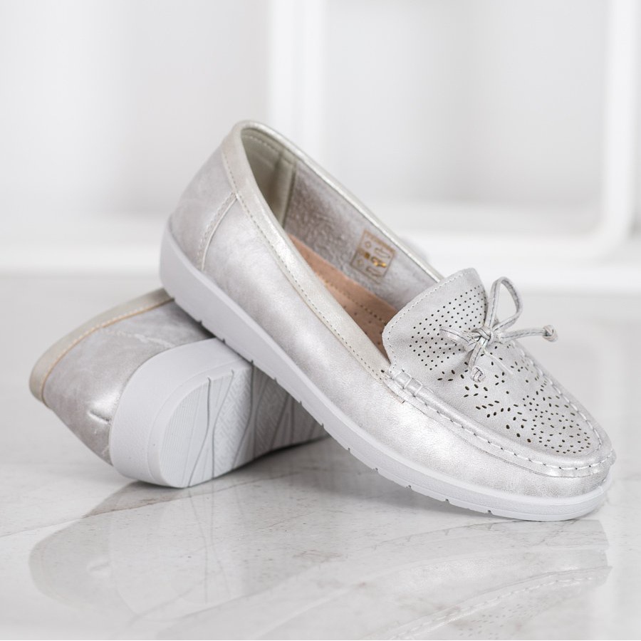 Mokasíny SHELOVET ve stříbrno-šedé barvě nesmí chybět v šatníku každé ženy jaro-léto. Díky jejich elegantnímu prolamovanému designu se perfektně hodí jak k ležérnímu stylu, tak k sofistikovanějším outfitům.