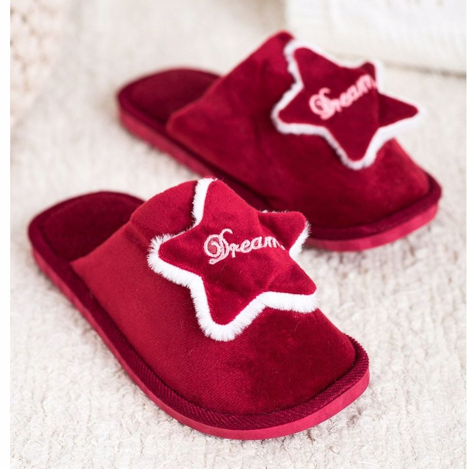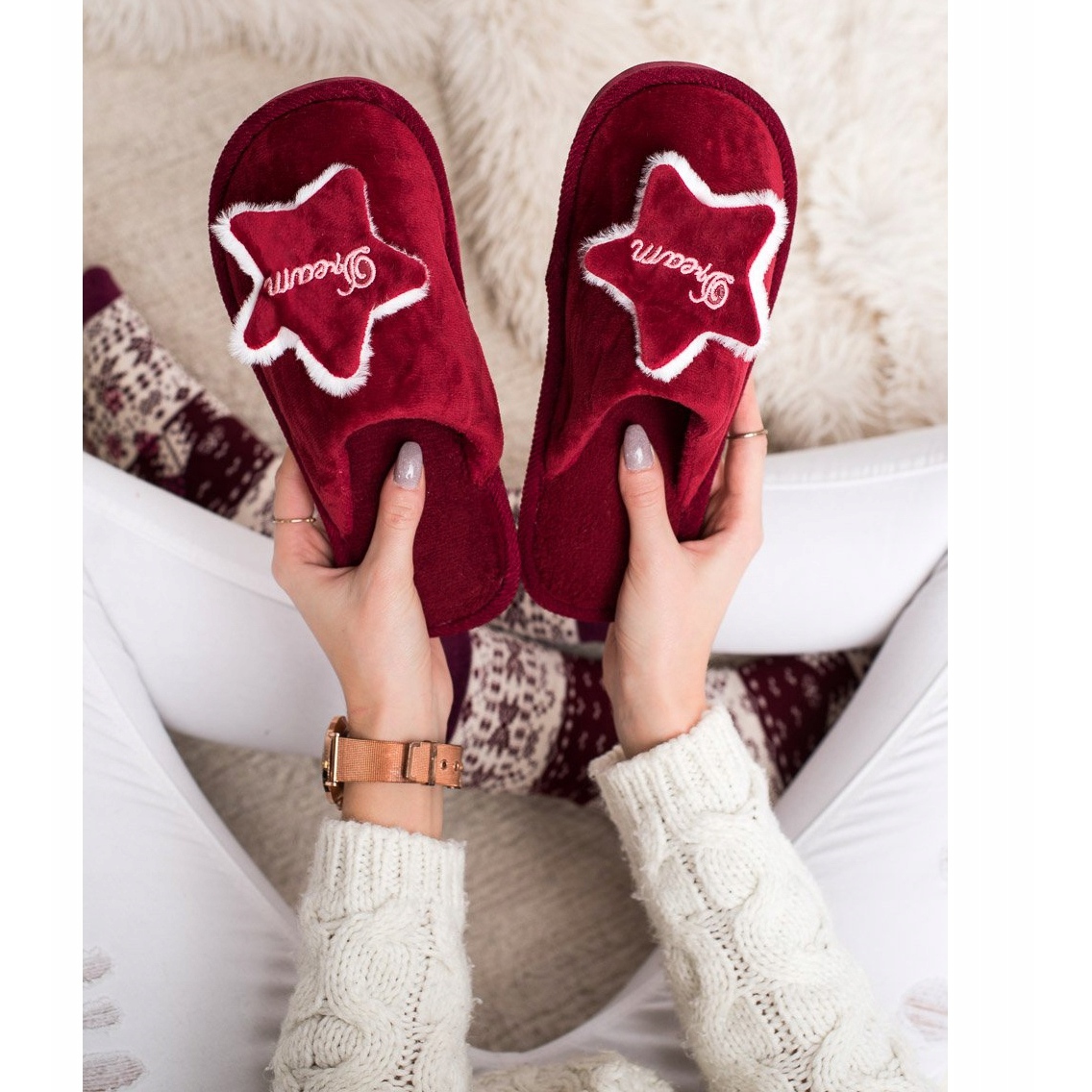 Bílé a červené pantofle Dream značky Bona jsou perfektní volbou pro lidi, kteří si cení pohodlí a módního vzhledu. Tyto mimořádně stylové pantofle se vyznačují jedinečným designem - na přední straně svršku je ozdobná 3D hvězda s nápisem, obklopená měkkým, bílým kožíškem, který jim dodává jedinečný charakter.