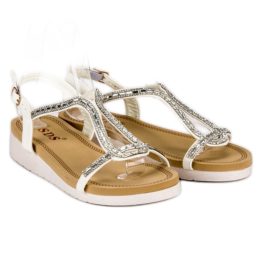 Bílé sandály SDS jsou perfektní volbou pro letní dny, kombinují eleganci s maximálním pohodlím. Tyto lehké boty vyrobené z měkké ekokůže vypadají nejen stylově, ale také poskytují naprosté pohodlí i po mnoha hodinách nošení. Lesklé ozdoby zirkony jim dodávají jedinečný charakter, díky čemuž jsou dokonalým doplňkem letních stylů - jak ke šortkám, tak k jemným šatům.