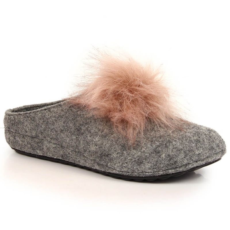 Jemné, stylové a velmi pohodlné ženské pantofle panto fino int1767b, vyrobené z měkké plsti, což zajišťuje pohodlí nošení po celý den. Jemný Pompom jim dává kouzlo a neutrální šedá barva s béžovými akcenty je způsobuje, že se hodí k mnoha domácným stylům.