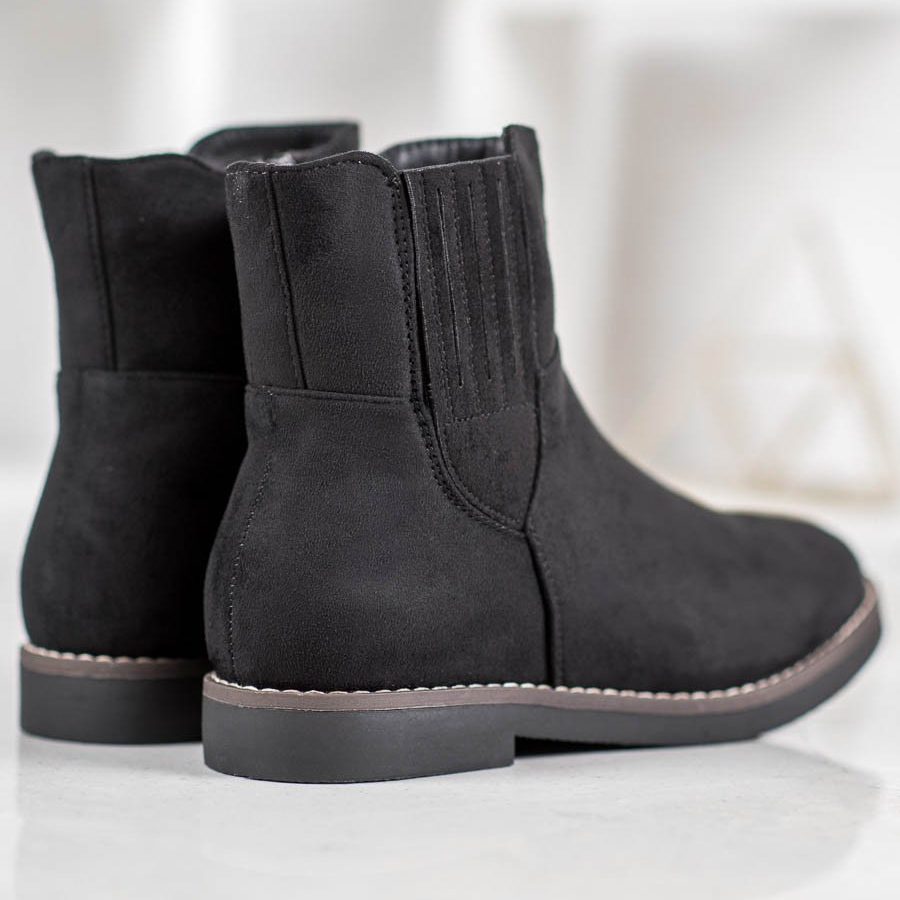 Semišové kotníkové boty jsou praktické a snadno se nazouvají díky elastickým páskům ve svršku. Vnitřní izolace navíc poskytuje teplo, takže jsou vynikající volbou pro chladnější dny. Mají kulatou špičku a zabudovanou měkkou patu, která zvyšuje komfort nošení.