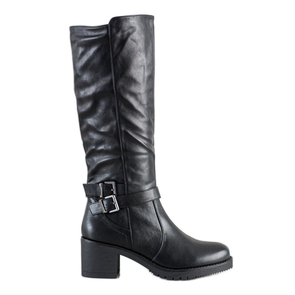 Flyfor Pohodlné vysoké kozačky se sponou černý