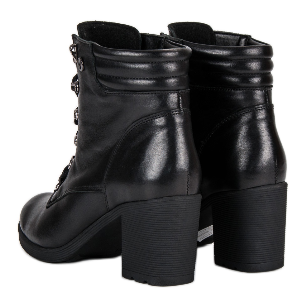 Tyto boty mají 8 cm podpatek v podobě kvádru, který je nejen zeštíhlí, ale také zajistí stabilitu a pohodlí při chůzi. Vnitřek bot vyplněný dekou na boty zaručuje příjemné teplo a tepelný komfort, nezbytný v chladnějších dnech. Kulatá špička a zapínání na šněrování dodávají stylový prvek a stříbrné držáky tkaniček jim dodávají moderní charakter.