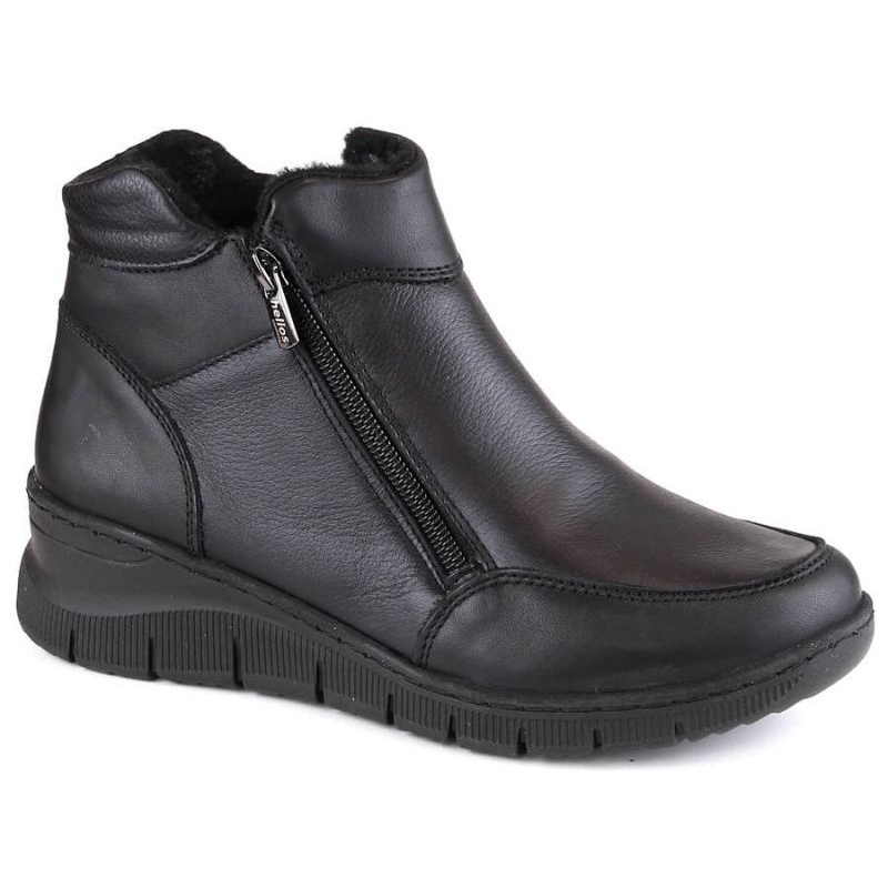 Kožená pohodlná boty Helios Wedge v H594A - klasické a pohodlí pro chladnější dny. Černá, elegantní horní část z přírodní kůže a izolované podšívky poskytuje teplo a pohodlí při chůzi po městě a trávení času aktivně venku. Model dosáhne kotníku a nabízí dobrou stabilitu a ochranu před chladem.