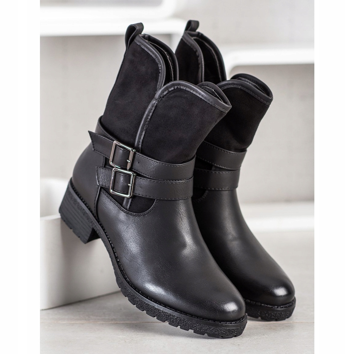 Díky 4 cm vysokému plochému podpatku je styling nejen módní, ale také pohodlný, což ocení každá aktivní žena. Vestavěná vyztužená pata poskytuje stabilitu a zip a ozdobná přezka jsou prvky, které zdůrazňují rockový styl těchto pracovníků.