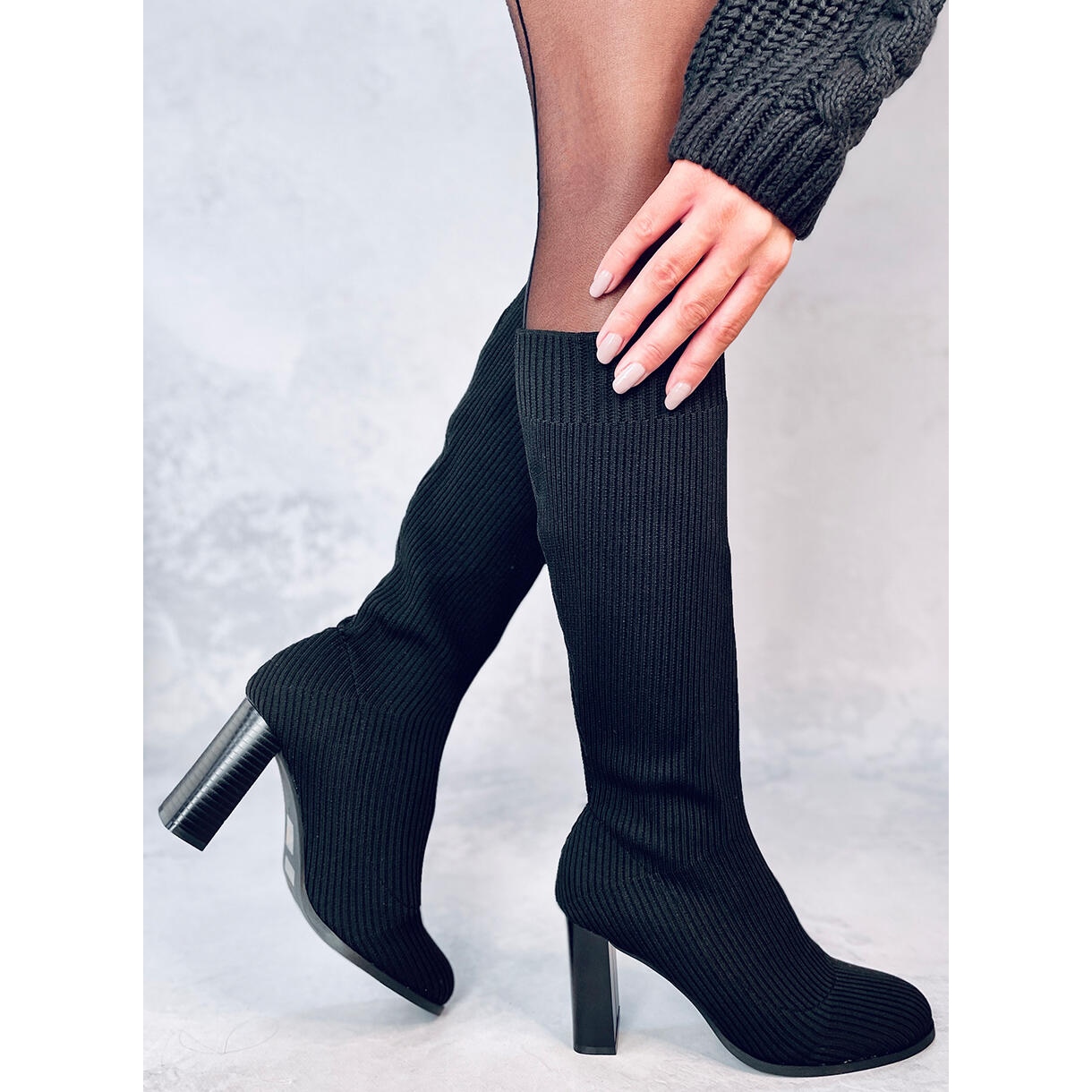 Inna marka Ponožkové kozačky Claudia Black na vysokém podpatku černá
