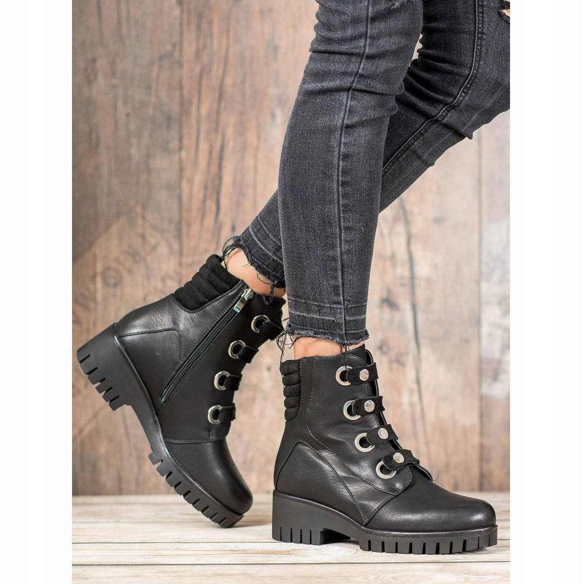 Rockový styl a vojenská móda, které nabízejí, dělají z těchto bot, které se perfektně hodí k různým stylům – od džínů po kožené sukně. Výška podpatku až 5 cm dodává siluetě štíhlou postavu a platforma 2 cm dělá každý krok lehkým a volným.