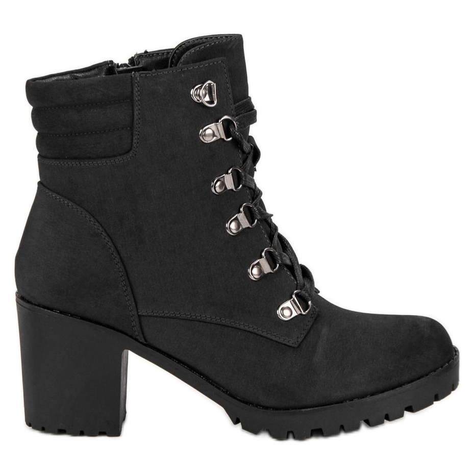 Černé pracovnice Vinceza jsou nabídkou, která uspokojí každou ženu, která hledá módní a funkční obuv. Jejich elegantní design je zvýrazněn vyztuženou patou a pevnou podrážkou s plastovým nášlapem, která zajišťuje stabilitu a pohodlí za všech podmínek. Urostlá, kulatá špička a šněrovací zapínání na zip dodávají charakter a 7,5centimetrový podpatek dokonale zvýrazní postavu.