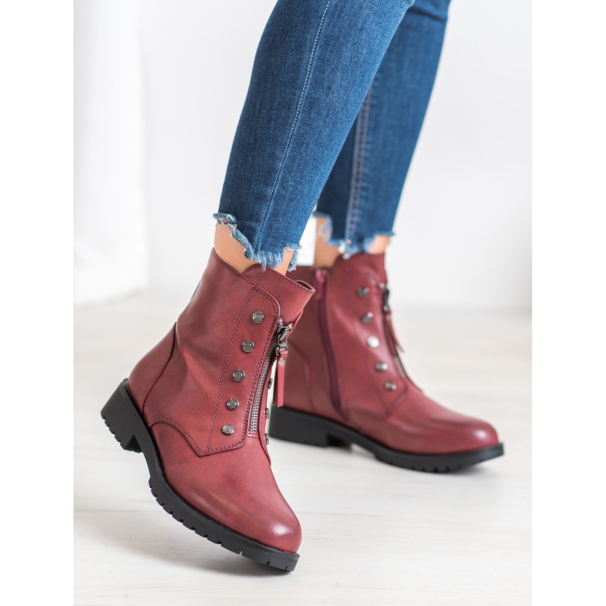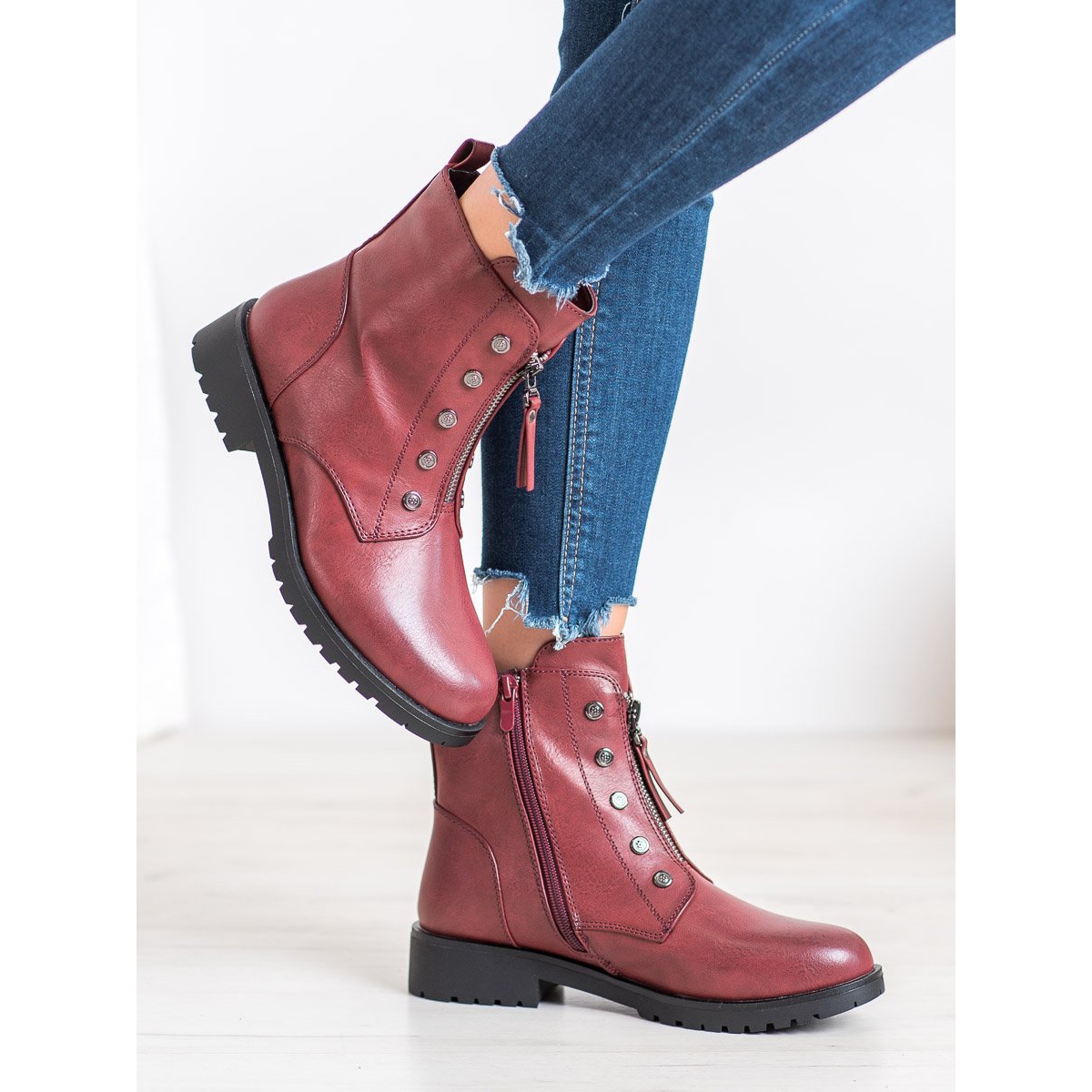 Poznejte J. Star Workery Na Zipper v červené barvě - perfektní volba pro nadcházející sezónu podzim/zima. Tyto stylové dámské kotníkové boty kombinují pohodlí každodenního používání a módní vzhled, díky čemuž jsou dokonalým doplňkem jakéhokoli ležérního a rockového stylu.