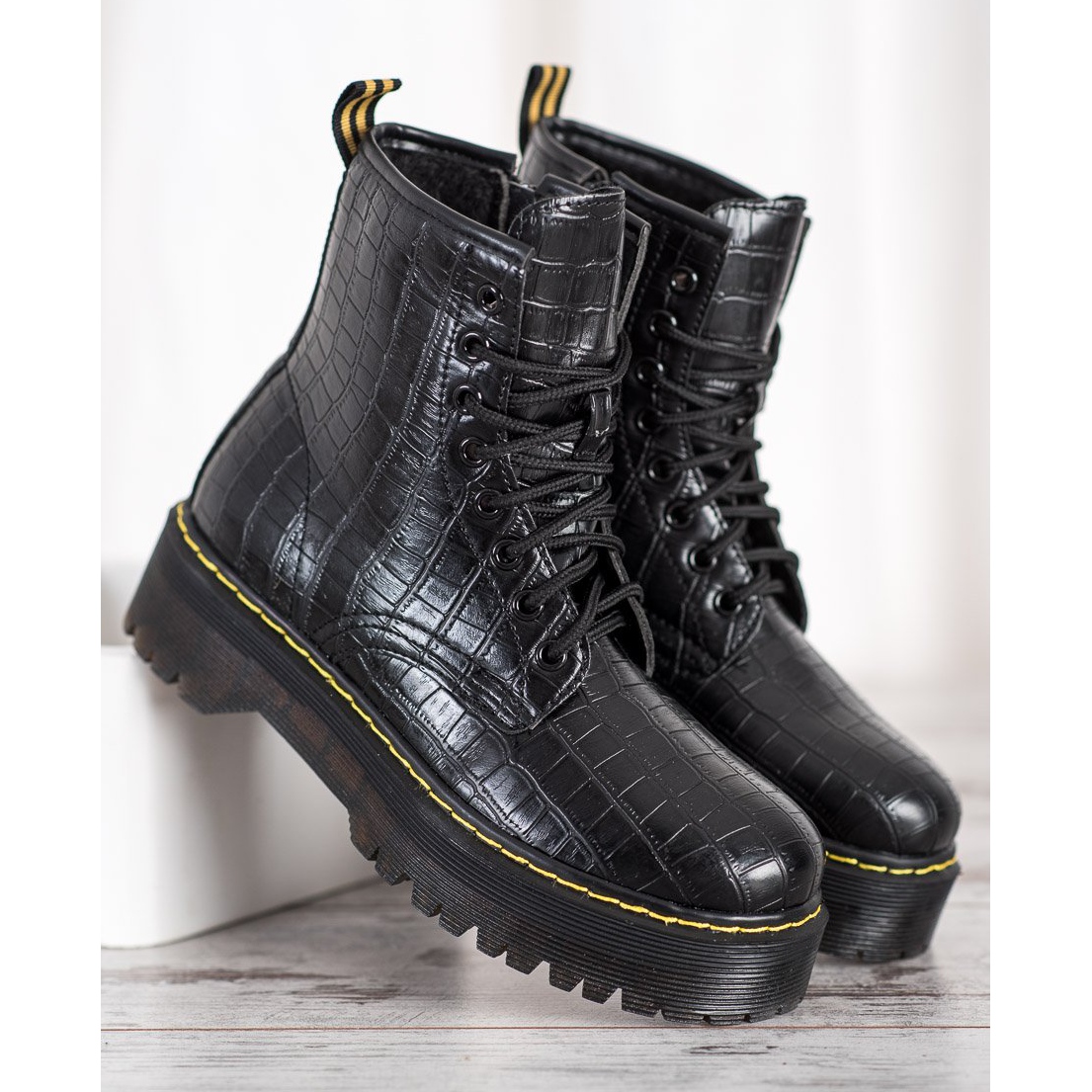Tento model je vybaven praktickým šněrováním a přídavným zipem, který usnadňuje obouvání a vyzouvání. 5 cm vysoká podešev s nášlapem poskytuje dobrou přilnavost a výjimečný komfort, který oceníte při dlouhých, aktivních dnech. Díky 4 cm vysoké platformě budou vaše nohy vypadat štíhlejší a budete se cítit sebejistě a stylově.