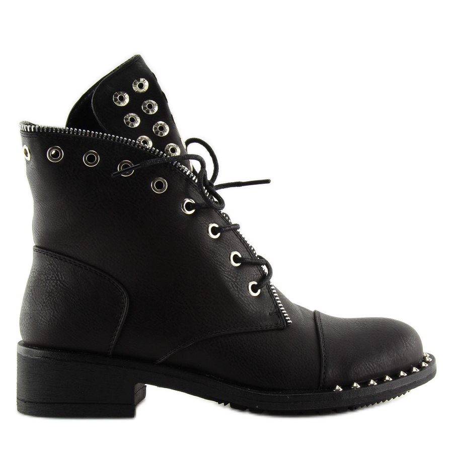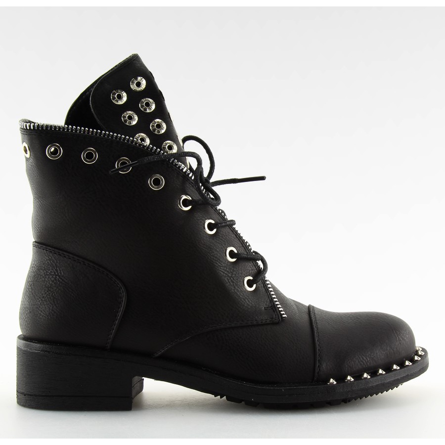 BH132-KB černé černé taštičky s cvočky jsou perfektní volbou pro ženy, které chtějí svému vzhledu dodat trochu rockového šiku. Tyto šněrovací boty dokonale kombinují klasický střih s moderními akcenty, potěší poutavým jazykem zdobeným kovovými prvky a cvočky umístěnými na přední části podrážky. Tyto kozačky vyrobené z vysoce kvalitní ekologické kůže nejen skvěle vypadají, ale také poskytují pohodlí díky vnitřku vystlanému jemnou kožešinou.