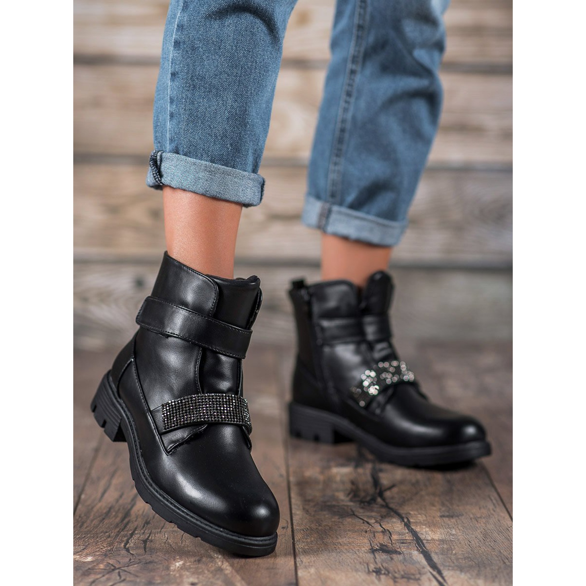 Představujeme boty Evento Workery s krystaly v černé barvě - dokonalá kombinace rockového stylu a elegance. Tyto neobvyklé kozačky na nízkém podpatku jistě upoutají pozornost každé sebevědomé ženy, která ocení jedinečný design a komfort nošení.