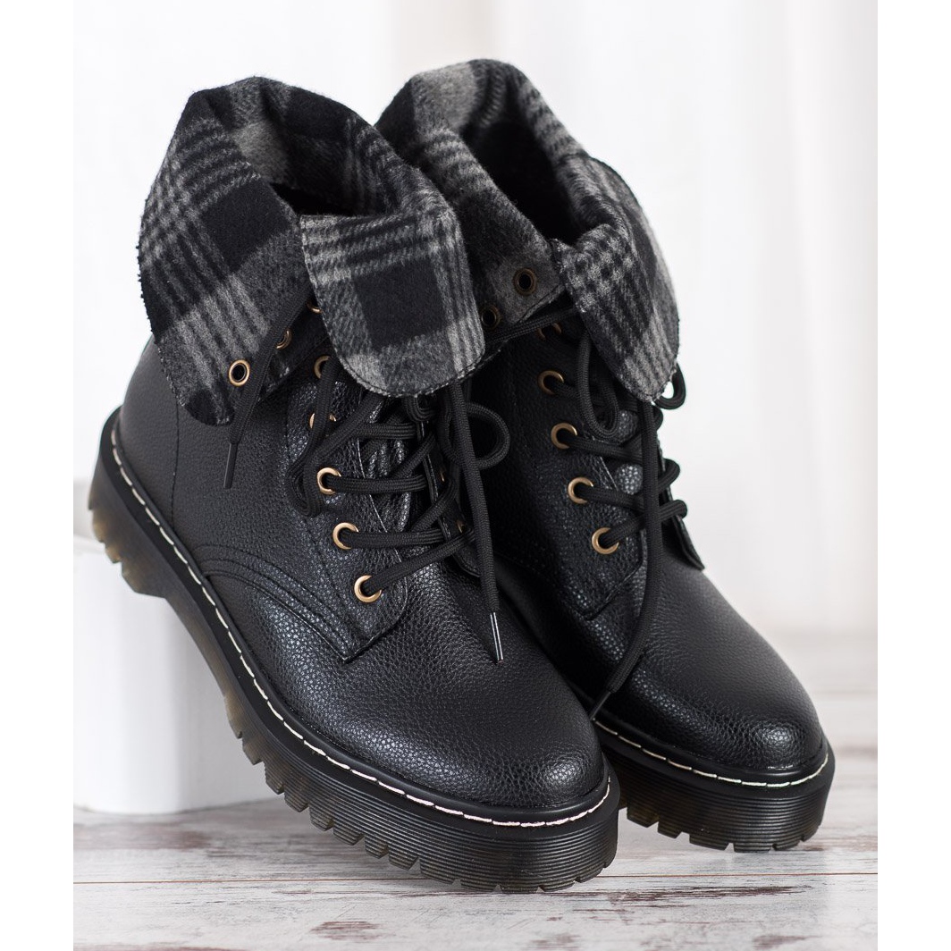 Další výhodou těchto kozaček je možnost vyhrnout svršek, což umožňuje libovolně upravovat jejich vzhled v závislosti na příležitosti. Tkaničky a zapínání na zip usnadňují obouvání a vyzouvání.