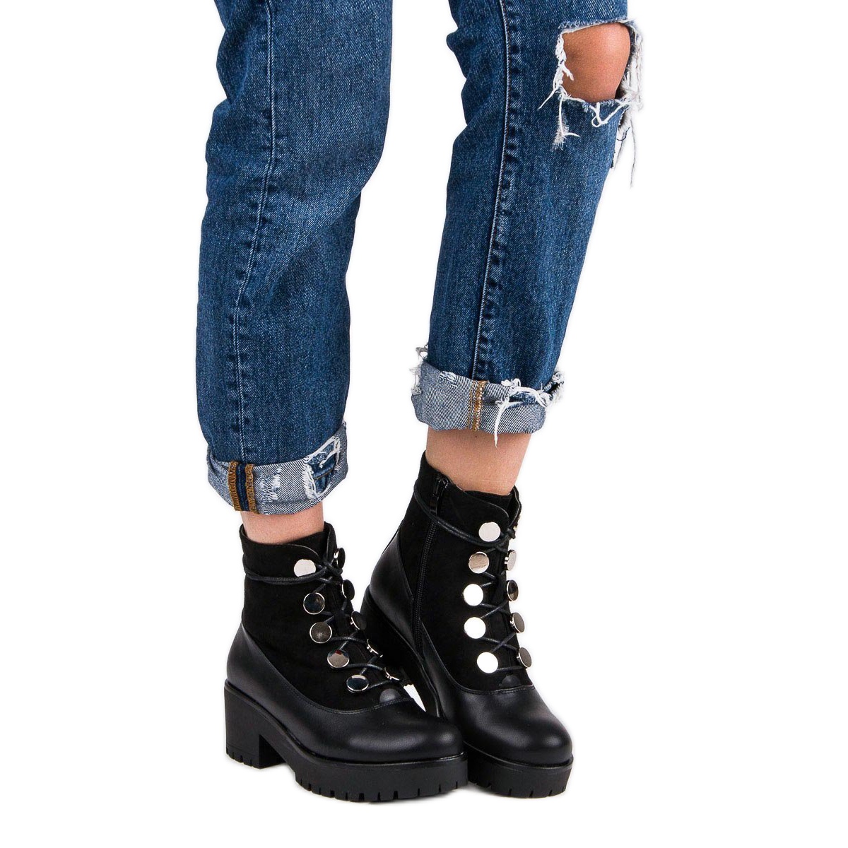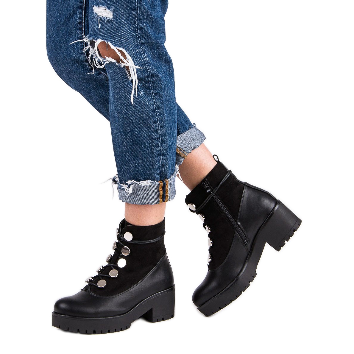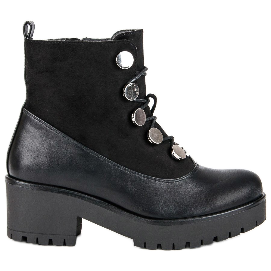 Zapínání na šněrování zajišťuje perfektní padnutí a kulatá špička a 6 cm plochý podpatek zajistí pohodlí při celodenním nošení. Černá barva a minimalistický design předurčují tyto workery jak ke každodennímu, tak k elegantnějšímu outfitu.