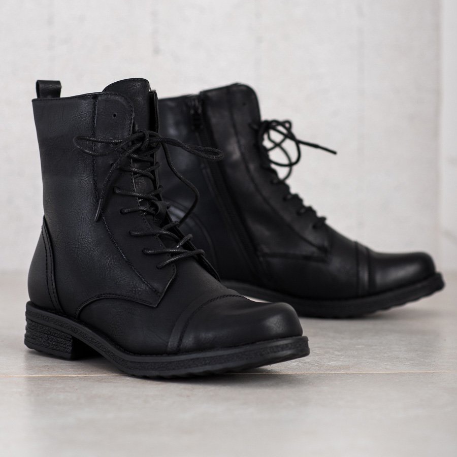SDS Lace-up Workers Black jsou perfektní volbou pro ženy, které oceňují pohodlí a módní vzhled. Tyto elegantní kotníkové boty vyrobené z vysoce kvalitní ekologické kůže dokonale odpovídají aktuálním trendům, kombinují ležérní a rockový styl.