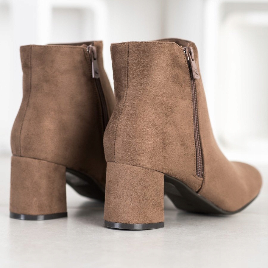 Charakteristickým znakem těchto bot je kulatá špička a zabudovaný podpatek, díky kterému se pohodlně nosí po celý den. 6 cm vysoký blokový podpatek dodává správnou výšku bez obětování pohodlí - ideální pro dlouhé podzimní a zimní dny. Horní výška je 10-11 cm, což znamená, že kozačky krásně obepínají kotník a dodávají eleganci každému outfitu.