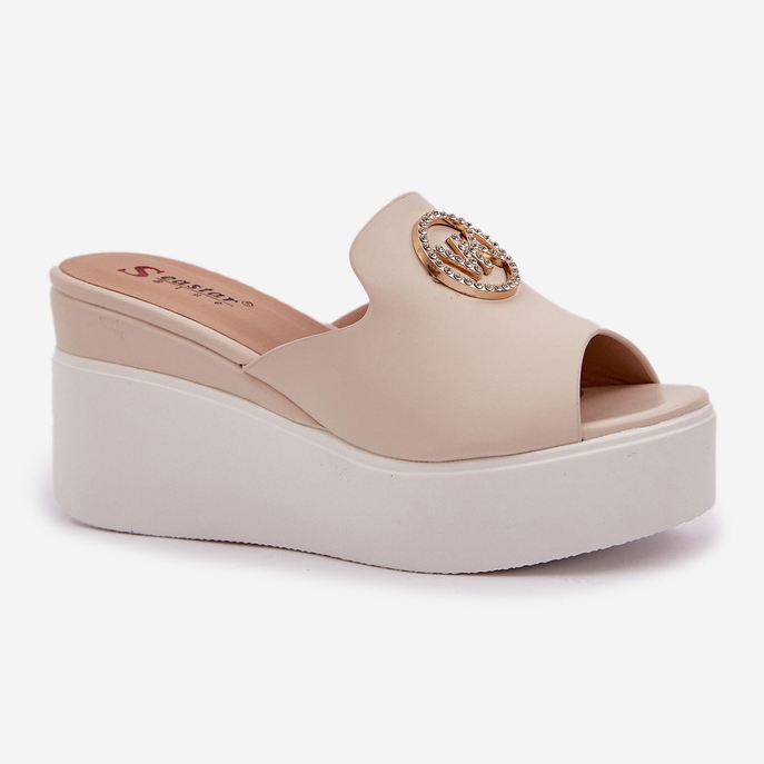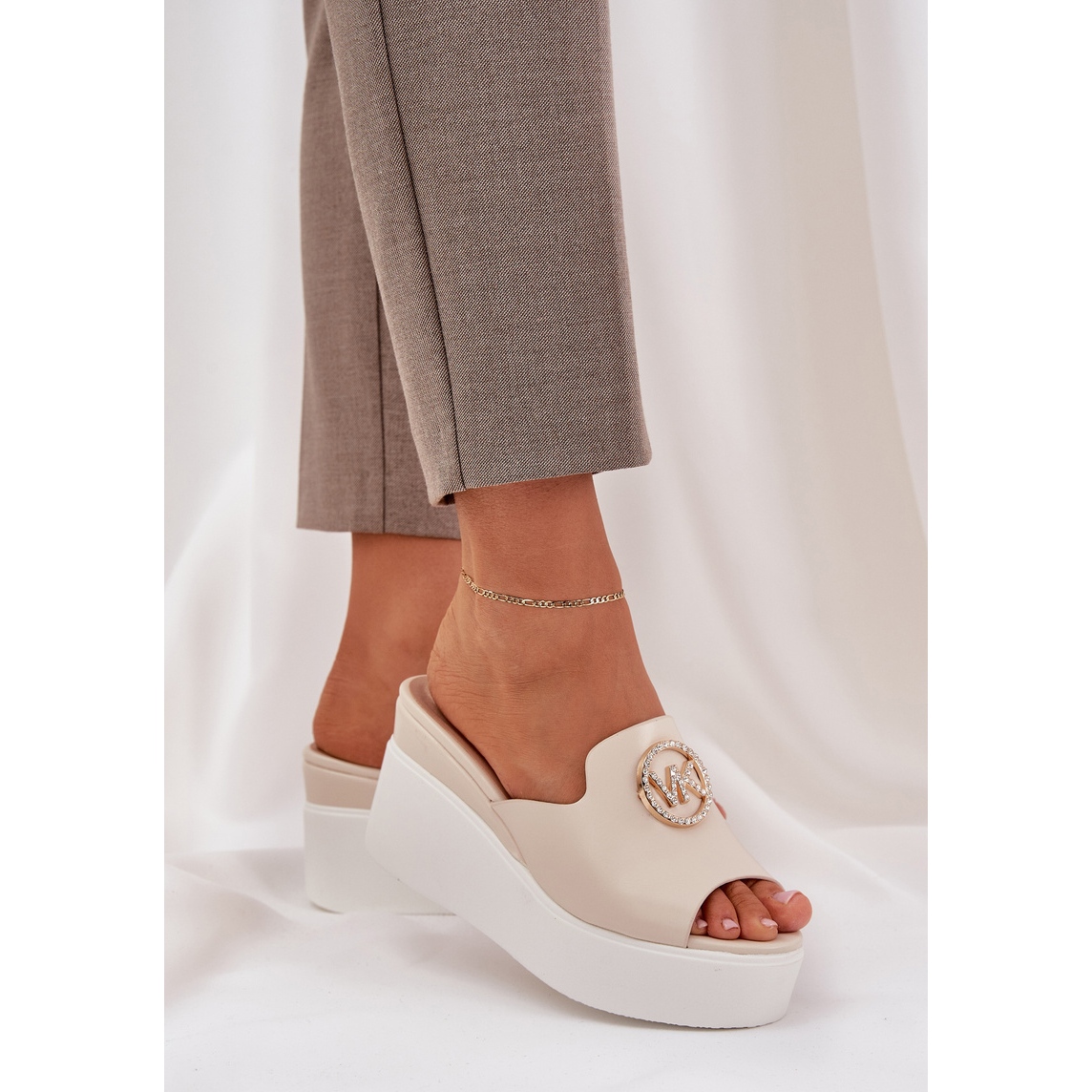 Flip -flops, který se staví na stabilním klínu s výškou 9 cm, nabízejí pohodlí během dlouhých procházek nebo prázdninových výletů. Kromě toho 4 cm vysoká platforma zaručuje pohodlí použití a velkou podporu pro nohu. Dekorace se zirkony umístěnými na frontě jim dává jemnou, elegantní postavu, která jistě přitahuje pozornost.