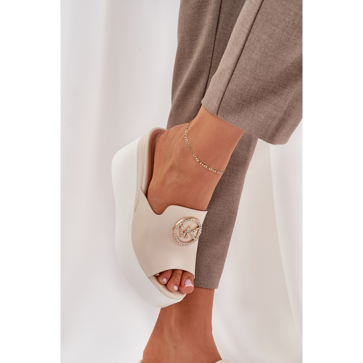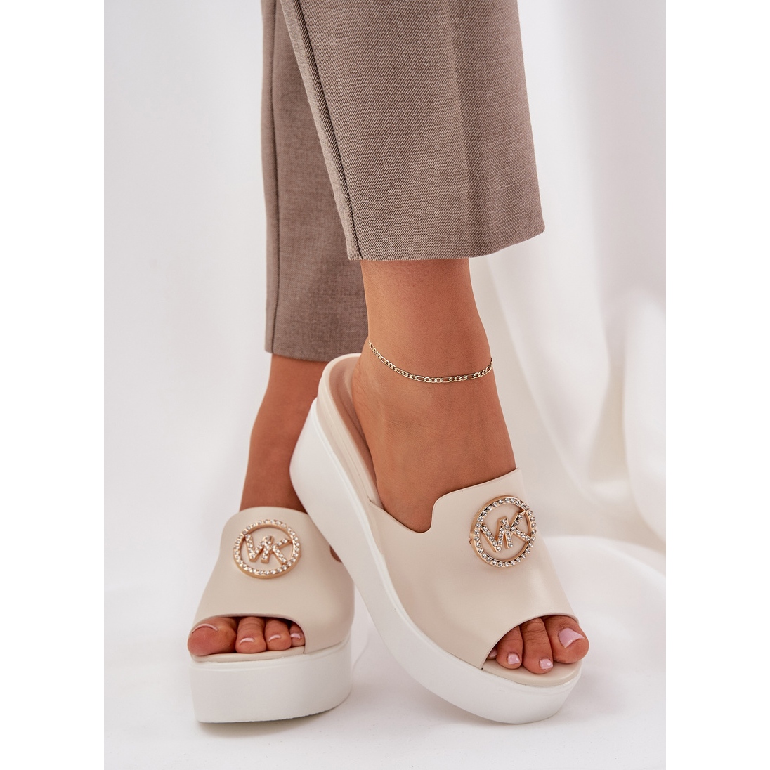 Vloží se žabky, což znamená, že na jejich nasazení a fotografie je velmi jednoduché a rychlé. Díky jejich béžové barvě je činí snadno přizpůsobené různým stylům a vytváří perfektní sadu denně i pro zvláštní příležitosti. Díky bílé plastové podrážce jsou žabky lehké a pohodlné, což z nich činí ideálními společníky letních dnů.