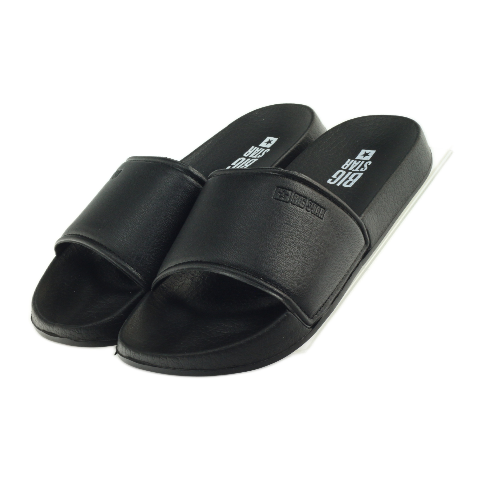 Černé profilované žabky Big Star jsou perfektní volbou pro teplé dny, perfektní jak doma, tak na pláži nebo na zahradě. Protiskluzové a pohodlné, vyrobené z vysoce kvalitní ekologické kůže a pěnového materiálu, zaručují pohodlí při používání.