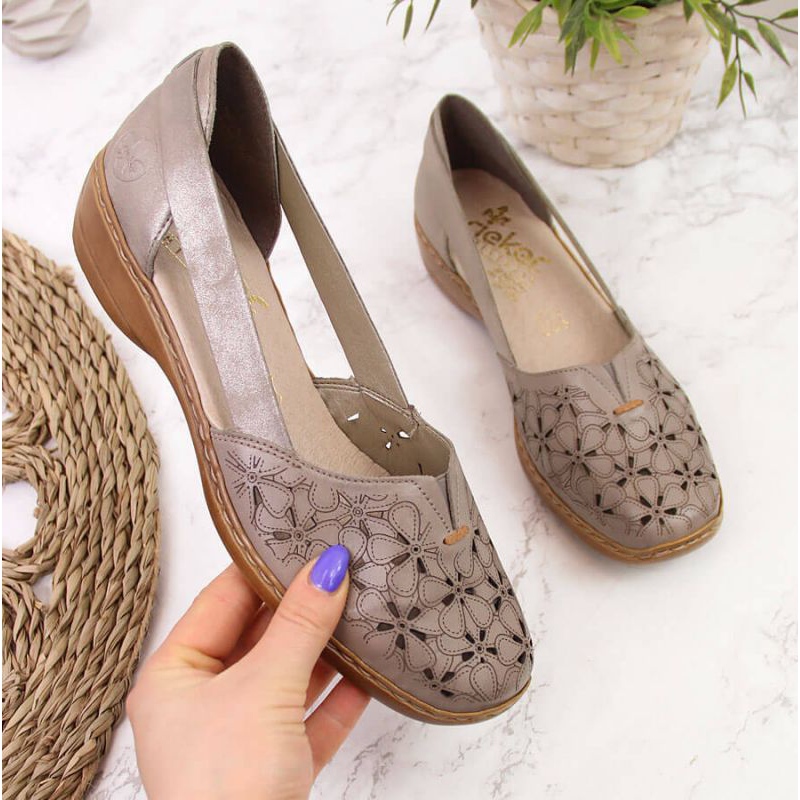 Lehká a pohodlná návrh z dobře známé značky Rieker - Openwork Women's Shoes 41356 v elegantní Pearl Beige. Ideální pro teplé dny: vzdušný, flexibilní a navržený pro maximální pohodlí nohou.