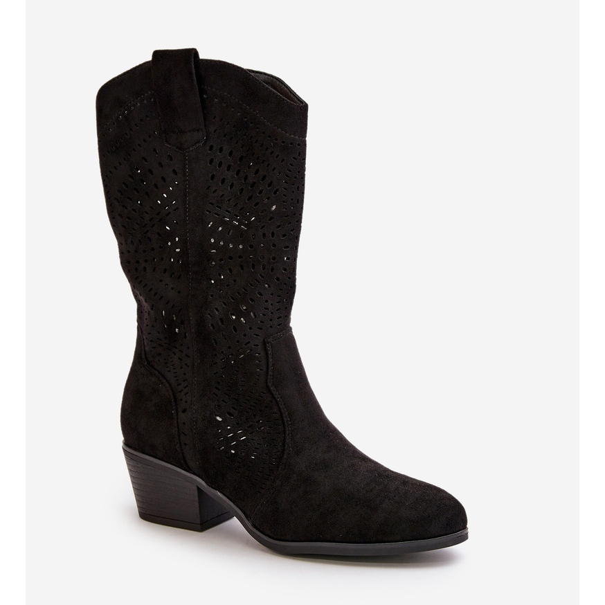 Podrobnosti: Prolamované dámské kovbojské boty na vysokých podpatcích, černá Iceda