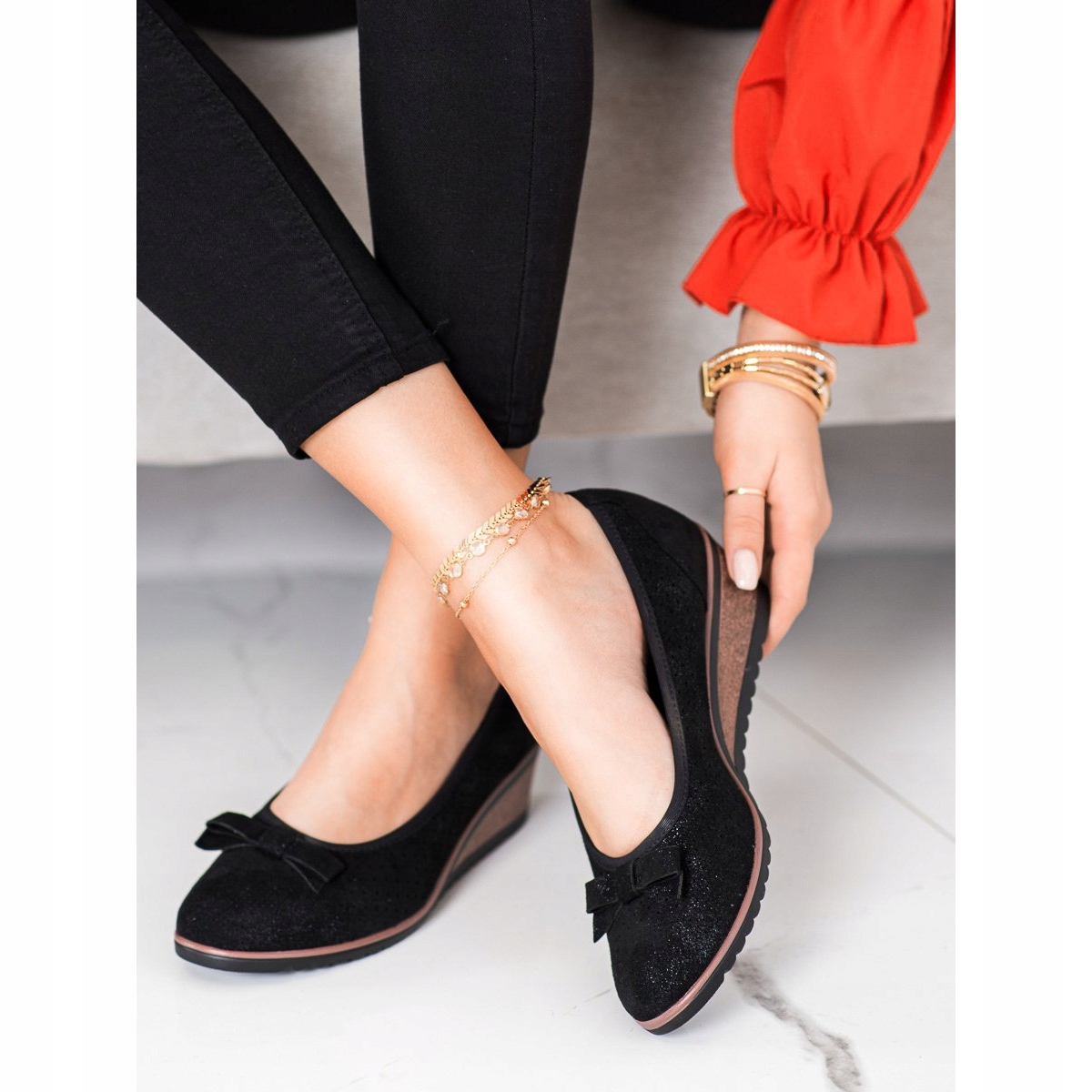 Další výhodou jsou ozdobné mašle pod zápěstím, které dodávají celku kouzlo a ženskost. Díky kulaté špičce a syntetické podrážce s běhounem tyto lodičky nejen krásně vypadají, ale jsou také praktické a funkční.