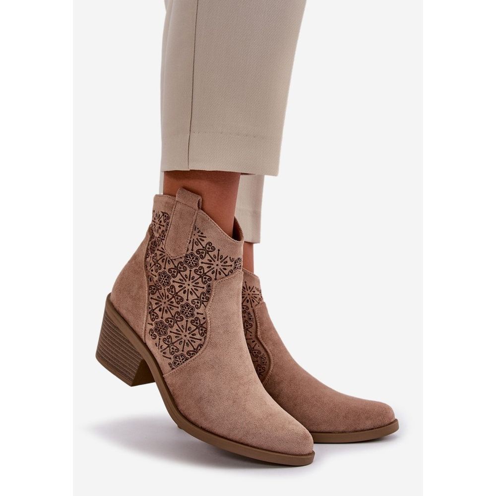 Podrobnosti: Prolamované kovbojské boty se zipem Eco Suede Béžová S.Barski HY42-944 béžový