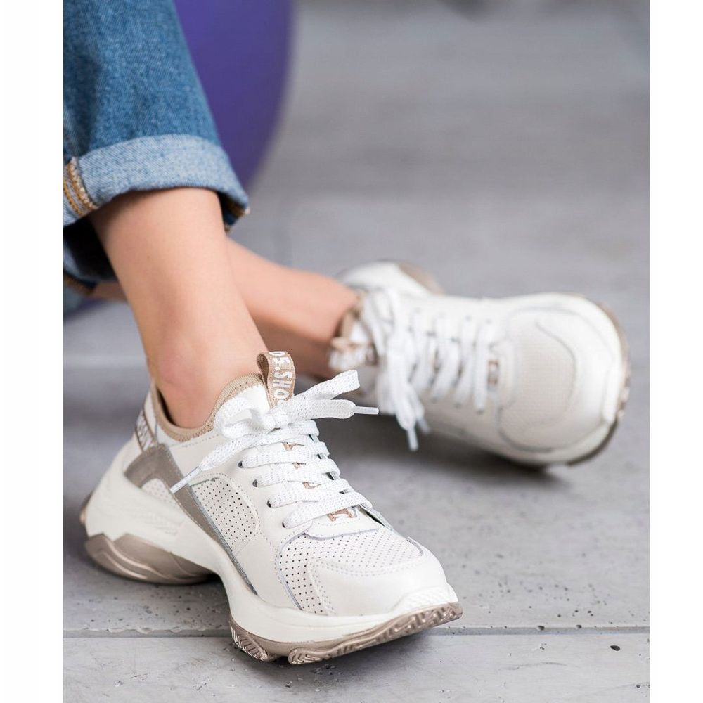 Podrobnosti: Goodin Prolamované kožené tenisky bílý žluť