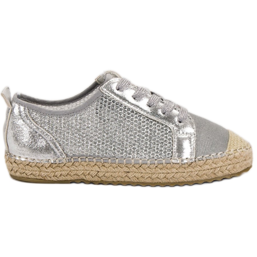 SHELOVET SHELOVET Prolamované krajkové espadrilky šedá