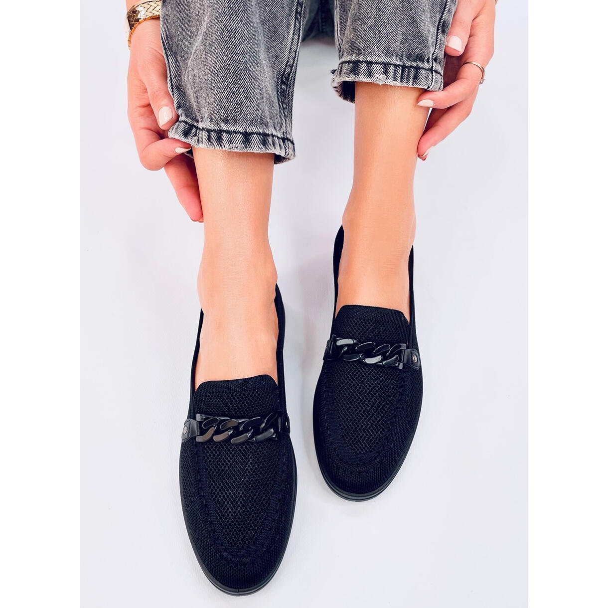 Objevte kouzlo Lucen Black Openwork Moccasins - ideální kombinace stylu a pohodlí. Tyto černé ženské mokasíny se vyznačují jemným, vzdušným vzorem, který je ideální pro teplejší dny a poskytuje nohy správné větrání. A co víc, efektivní řetězec na horní části přitahuje vzhled a přidává do bot módní postavu.