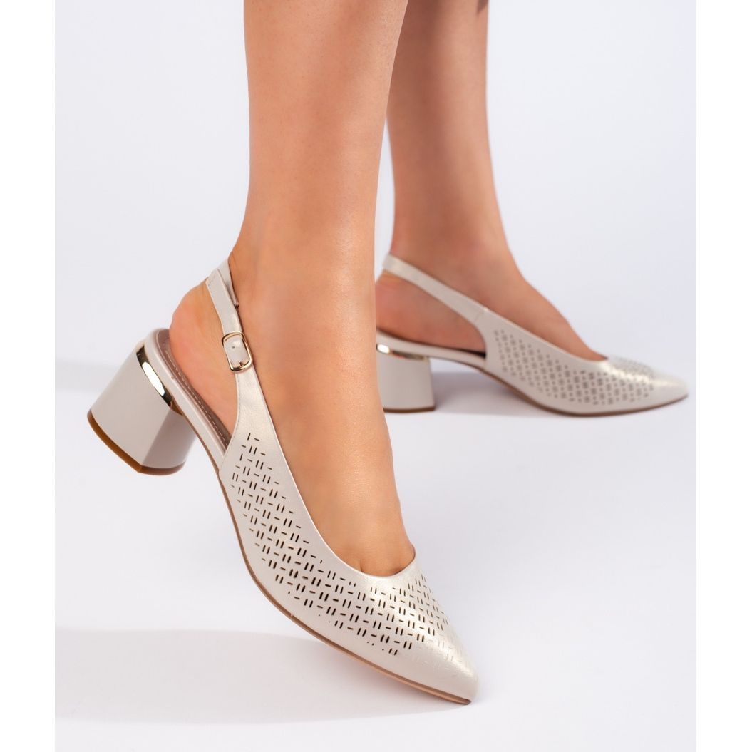 Podrobnosti: Prolamované perlové lodičky s otevřeným podpatkem od Sergio Leone béžový