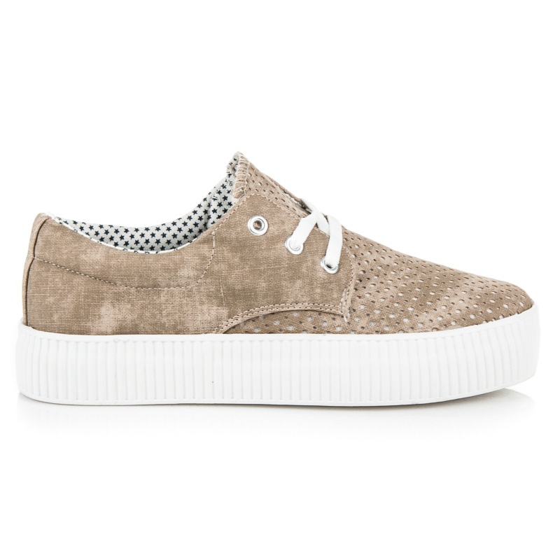 Představujeme hnědé prolamované tenisky na platformě značky Kylie - perfektní volba pro ženy, které ocení módní a pohodlnou každodenní obuv. Tyto tenisky vyrobené z vysoce kvalitní eko kůže spojují styl a funkčnost. Prolamované dekorace na celé ploše jim dodávají moderní charakter, který upoutá a vyčnívá z klasických modelů.
