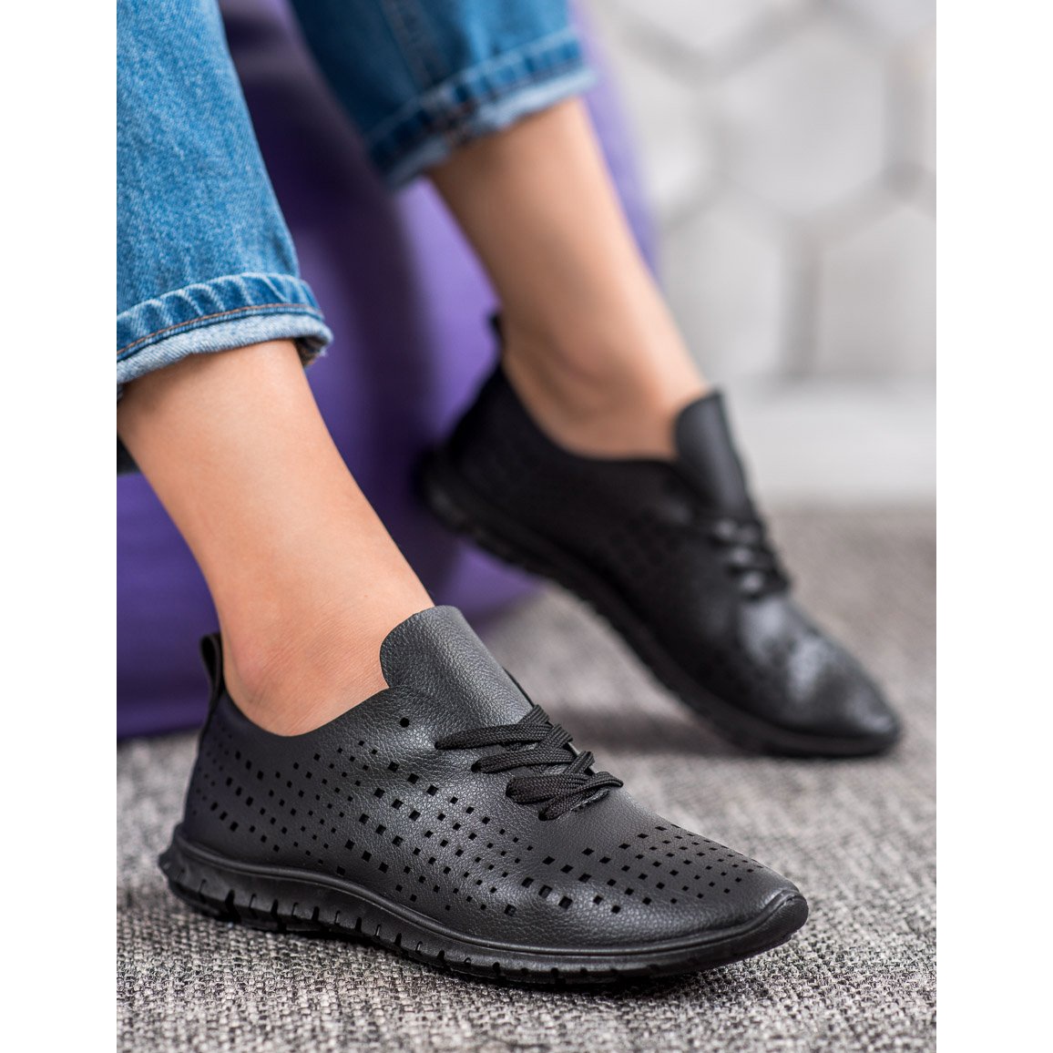 Představujeme prolamované tenisky Camo vyrobené z eko kůže v elegantní černé barvě - perfektní volba pro ženy, které oceňují pohodlí a styl. Tyto jedinečné tenisky značky Camo jsou pečlivě vyrobeny z materiálu imitujícího kůži, což z nich dělá módní i ekologické řešení. Prolamovaný svršek je perfektním řešením pro teplejší dny, zajišťuje dostatečné větrání a pohodlí při nošení.