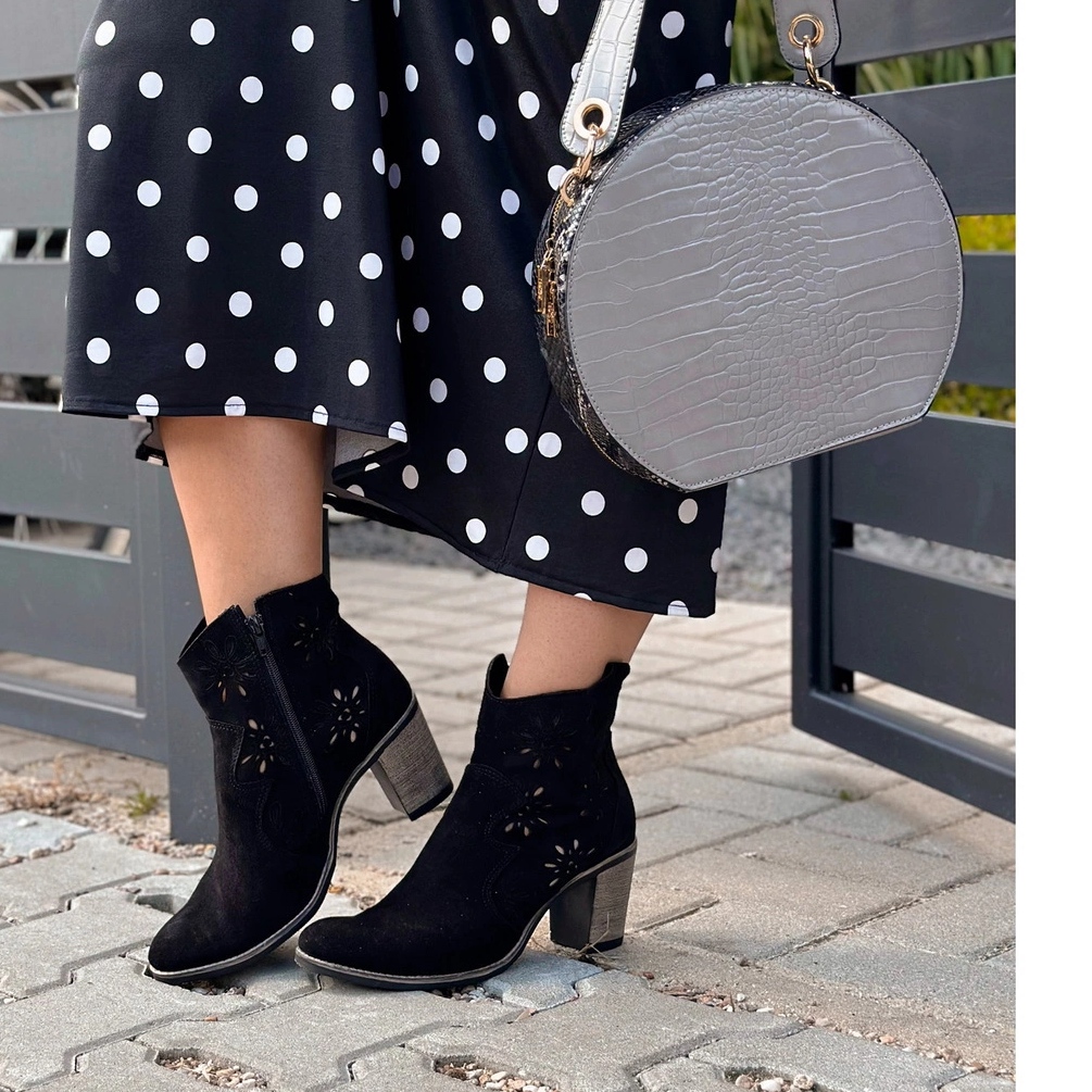 Elegantní a praktické zároveň - jedná se o ženské boty Lena od polského výrobce Oliviera. Vyrobeno uvnitř i vně přírodní kůže (Nubuk), zajistěte pohodlí a příjemné pro dotykový povrch. Vzorek otevřenosti na horní části přidává lehkost a umožňuje vašim nohám dýchat, díky kterému jsou boty také skvělé bez punčocháče. Model sáhne po kotníku (asi 15 cm) a praktický zámek po celé délce usnadňuje oblékání.
