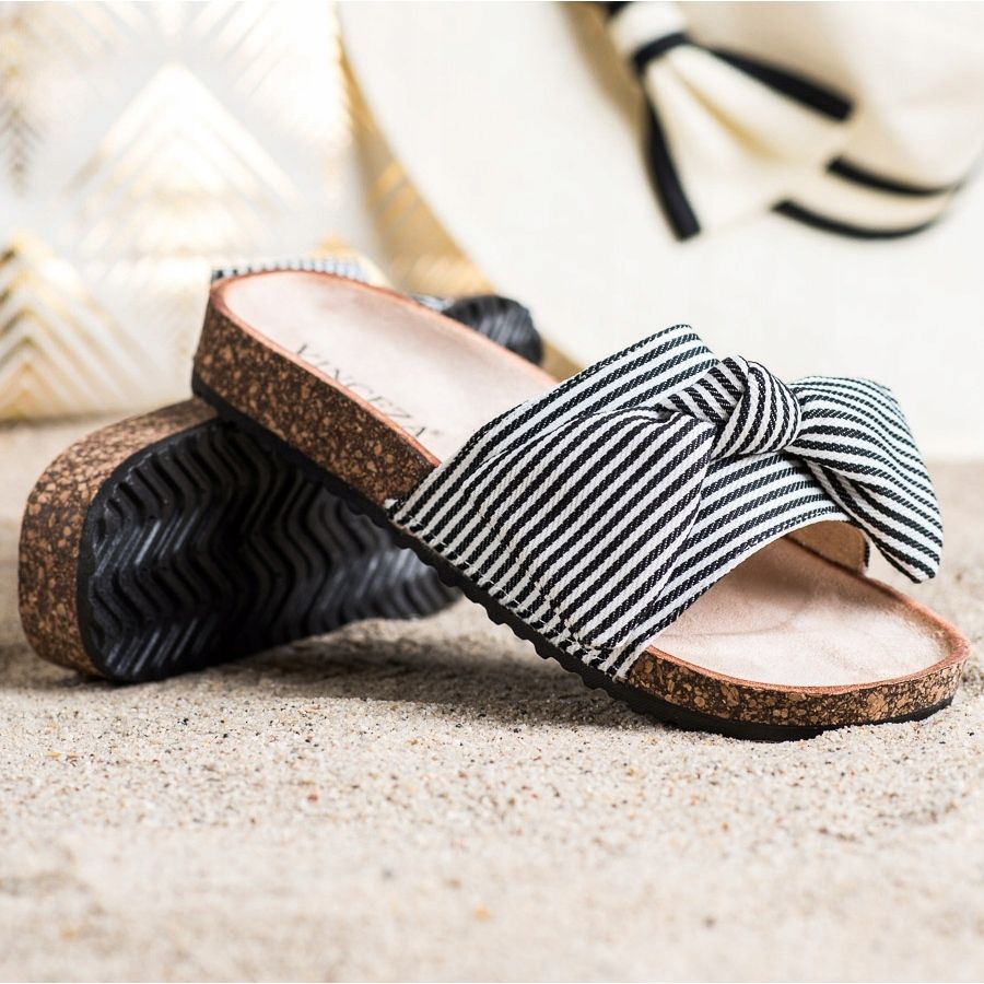 Pruhované žabky Vinceza jsou perfektní volbou pro jarní a letní dny, které kombinují módní styl s výjimečným pohodlím. Tyto dámské žabky v decentní kombinaci bílé a černé jsou perfektní pro každodenní styling, dodávají lehkost a svěžest. Jsou vyrobeny z kvalitních textilních materiálů, příjemně se nosí a díky otevřené patě se snadno nazouvají i vyzouvají.