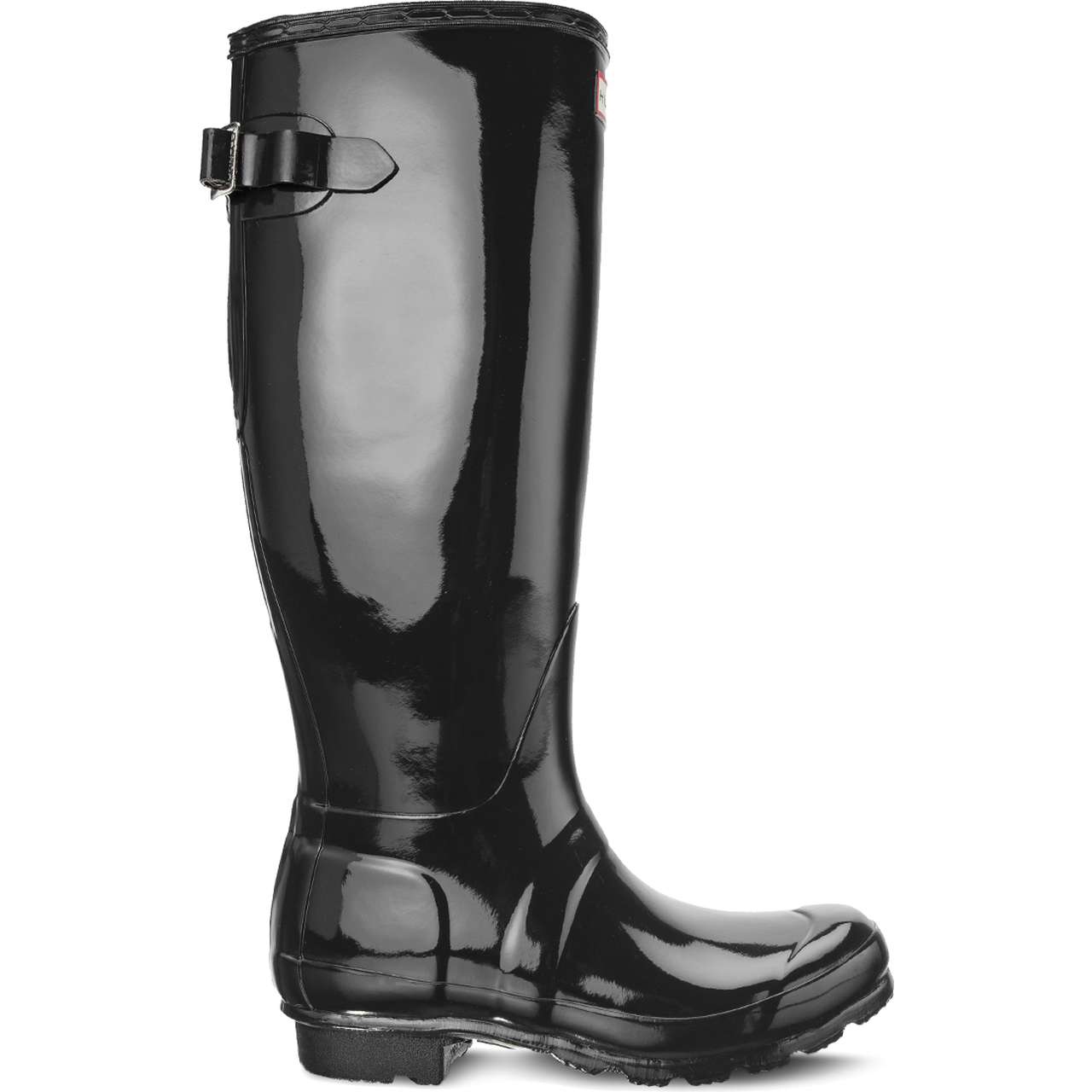 Hunter Original Back Adjustable Gloss Black - ikonické, lesklé dámské holínky do deště, které kombinují ikonu stylu s každodenní praktičností. Ručně vyrobené z vulkanizované pryže s lesklou povrchovou úpravou upoutají pozornost minimalistickým designem a solidním zpracováním. Nastavitelný pásek vzadu umožňuje přizpůsobit svršek lýtku a zajišťuje tak lepší stabilizaci a pohodlí při nošení.
