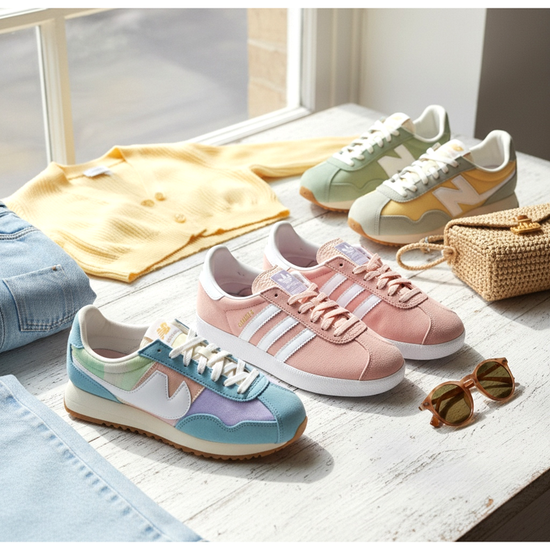 Několik konkrétních modelů tenisek dosáhlo v této sezóně statusu módní ikony. V popředí je adidas Gazelle - bota známá již od 60. let, ale především oblíbená v 70. letech jako obuv. Dnes je zpět v nových jarních barvách a nesmí chybět v šatníku lidí, kteří sledují trendy.