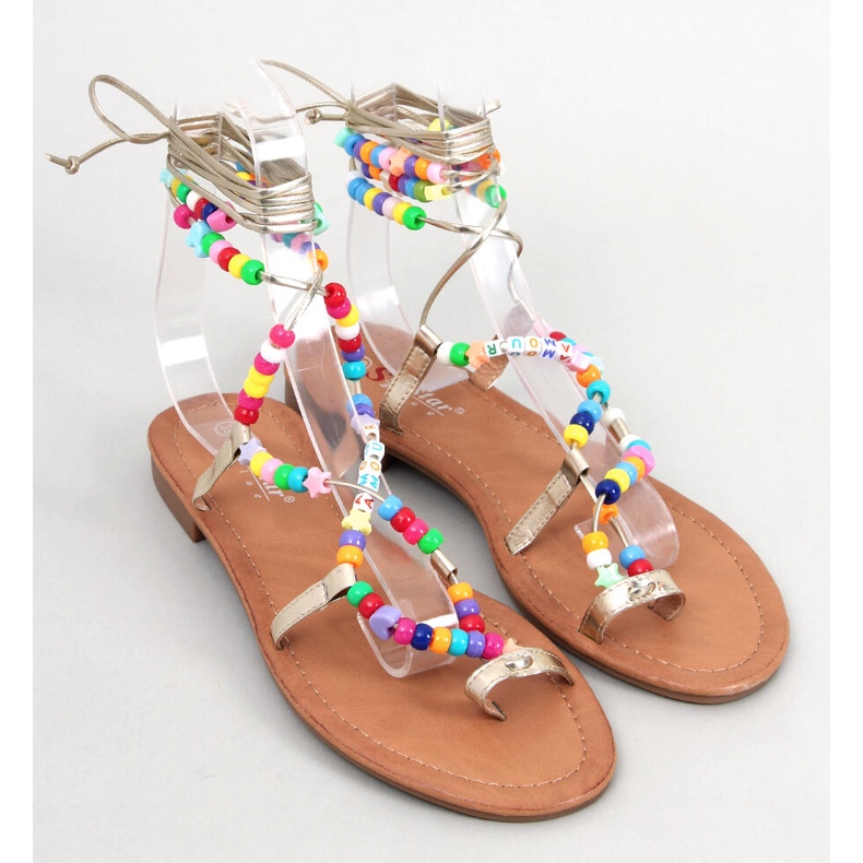Objevte jedinečné dámské římské sandály BM s korálky Megh Gold v neobvyklé zlaté barvě! Tyto poutavé římské boty s plochou podrážkou nesmí chybět v každém letním šatníku.
