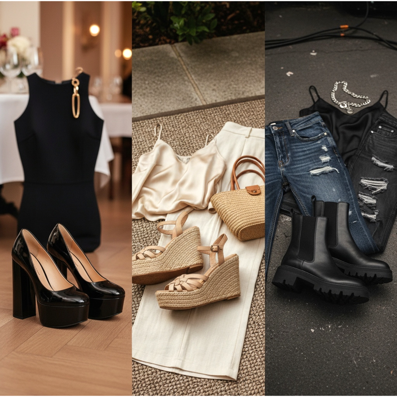 Sandály na platformě jsou perfektní volbou na letní párty a zahradní párty. Vyberte si model s jemnými proužky a korkovou nebo jutovou podrážkou, abyste svému outfitu dodali sváteční charakter. K takovým botám se perfektně hodí plátěné kalhoty, hedvábné halenky a tkané kabelky.