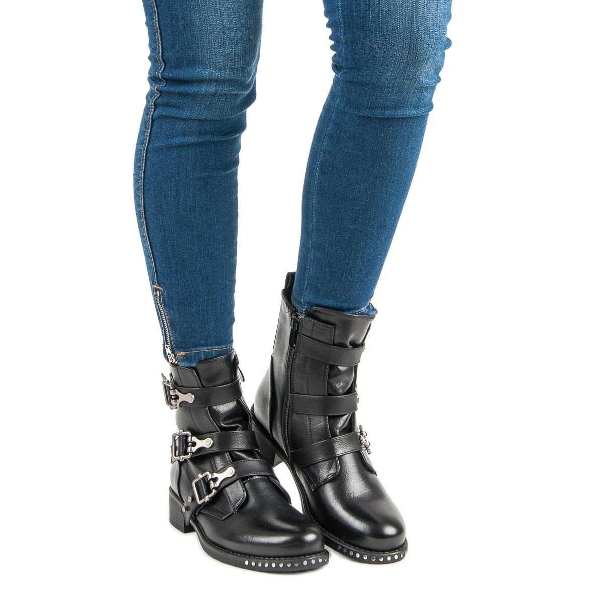Černé kotníkové boty Seastar jsou perfektní volbou pro ženy, které chtějí spojit styl s pohodlím. Tyto elegantní a módně navržené boty jsou ideální pro každou příležitost, jak pro každodenní, tak pro zvláštní příležitosti. Jedinečným prvkem jejich designu jsou poutavé boční přezky a křišťálové ozdoby na podrážce, které jim dodávají rockový charakter.