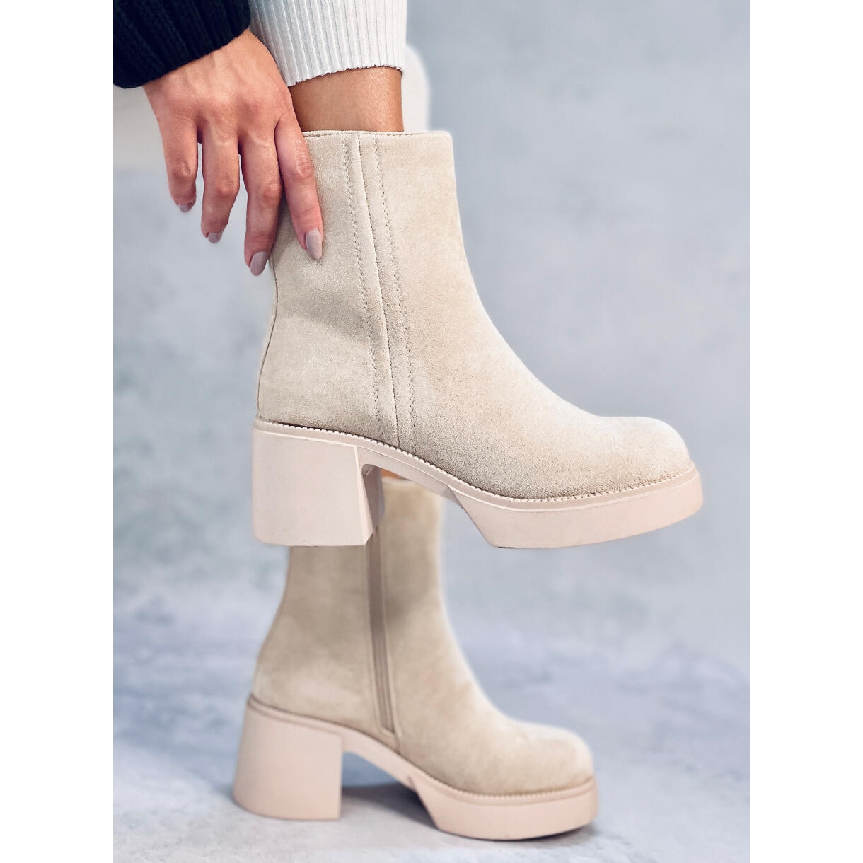 Dámské ruffinové boty v nadčasové béžové barvě je návrh kombinující klasický vzhled s maximálním komfortem. Vyrobeno z ekologického semiše, ideální pro chladnější dny díky měkkému oteplování uvnitř. Stylová, ale stabilní bloková pata způsobuje, že tyto modely skvěle pracují a během víkendových východů.