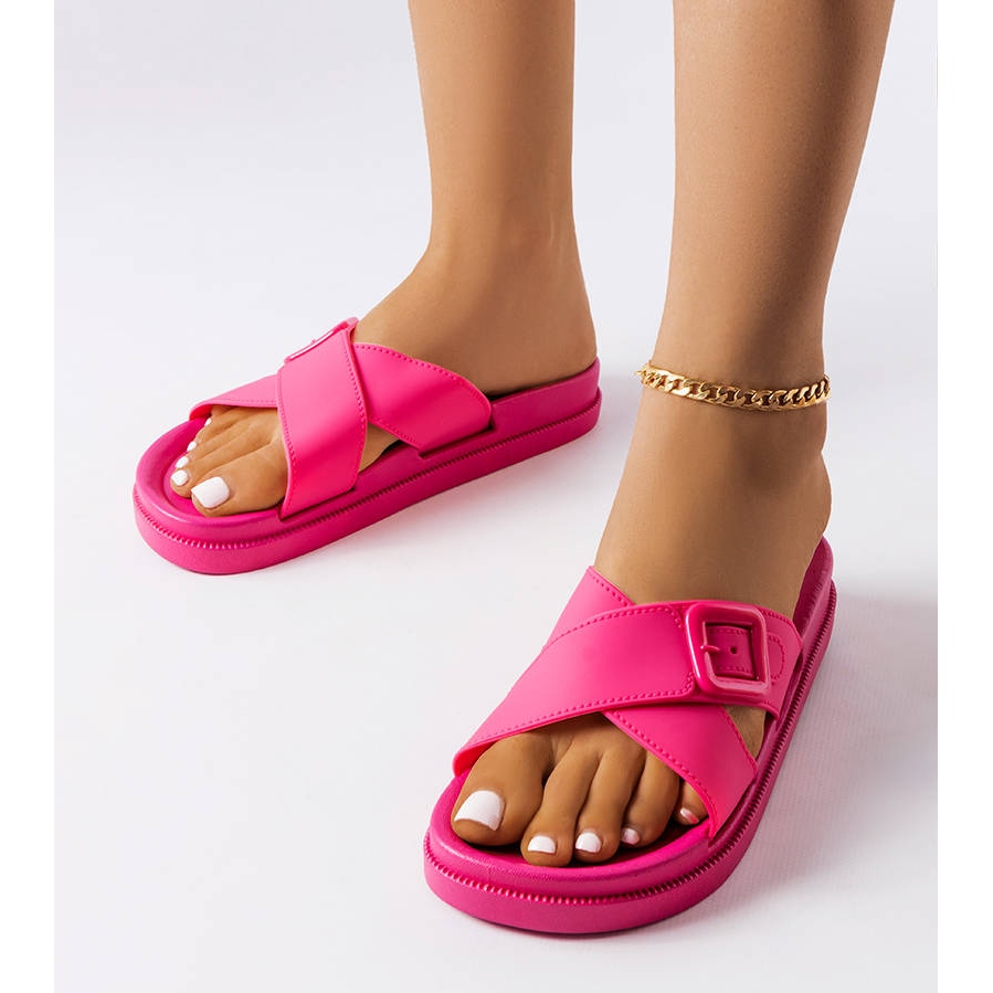 Model Pauline je vybaven atraktivní sponou, která je nejen praktickým prvkem, ale také estetickým akcentem. V odstínu fuchsie jsou tyto žabky poutavé a dostatečně univerzální, aby se hodily k široké škále letních stylů, od plážových šatů po městské šortky.